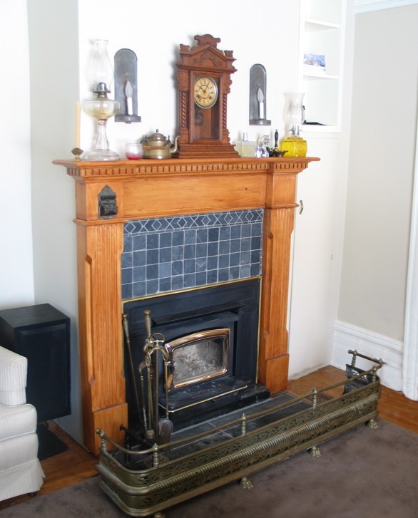 complete with slate hearth, antique bumper & new tile work by the owner.